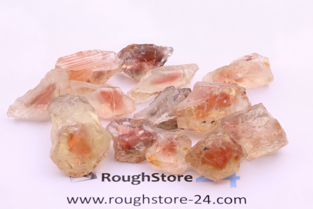Ein schönes Lot Oregon Sunstones. Die Steine brauchen etwas Trimmen, sind aber sehr sauber.
